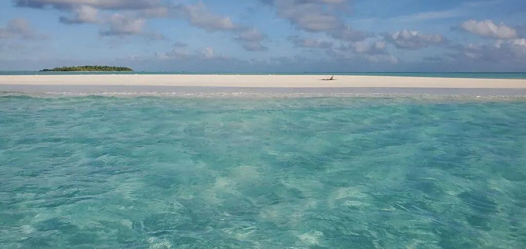 Can you walk around Aitutaki? No, while it is surrounded by a coral reef, this is not walkable as it’s where the waves crash from the ocean. There are smaller motu (islands) within the lagoon that you can walk around though.
