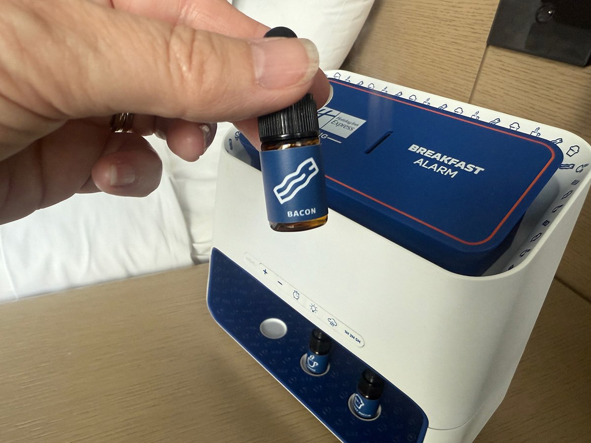 Wake up and smell the coffee: You don’t need a blaring alarm clock in this hotel, just a few drops of coffee, bacon or muffin essence