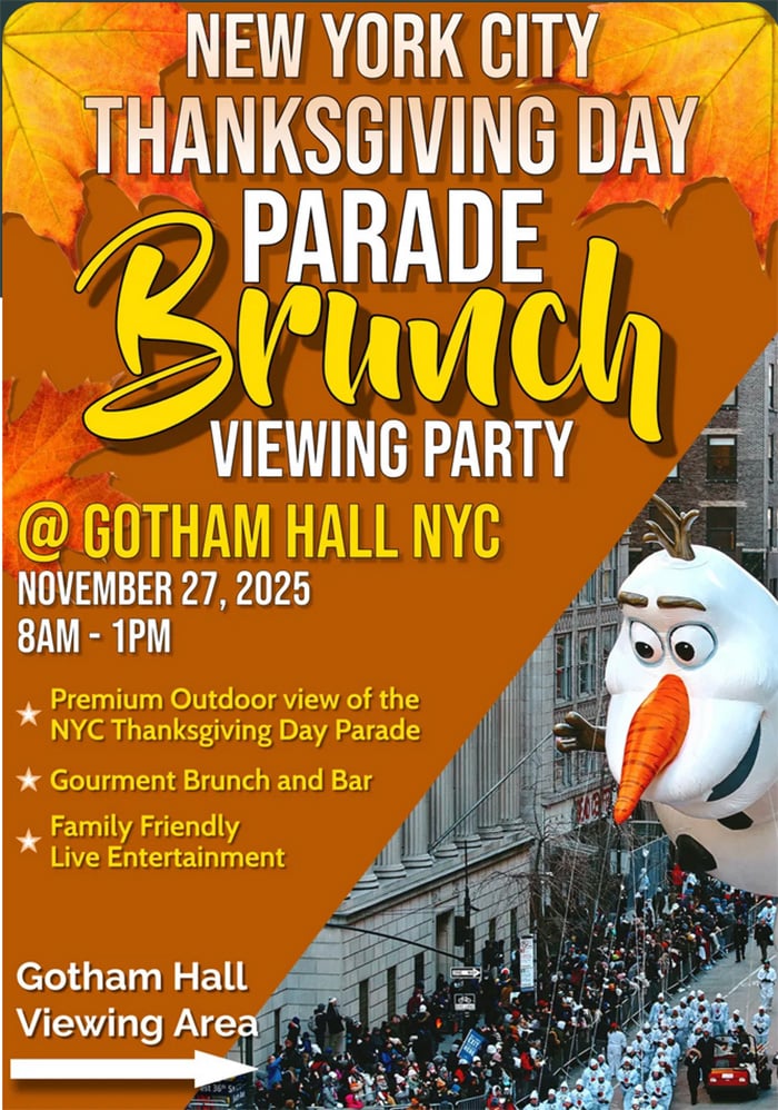 Historic Gotham Hall’s private viewing area will give ticket holders an exclusive street-level view as the parade travels down 6th Avenue, past 36th Street.
